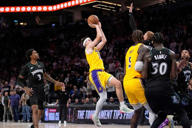 當(dāng)時(shí)里夫斯心中,肯定想起了洛杉磯湖人隊(duì)史多位超級(jí)巨星,奧尼爾、科比、費(fèi)舍爾、詹姆斯。因?yàn)槟且豢?,里夫斯就是他們。就在今日早些時(shí)候結(jié)束的一場(chǎng)比賽里,湖人116-115絕殺森林狼,拒絕逆轉(zhuǎn)。在多人缺席的情況下,湖人靠著殘陣擊敗了這位近幾年難纏的對(duì)手。