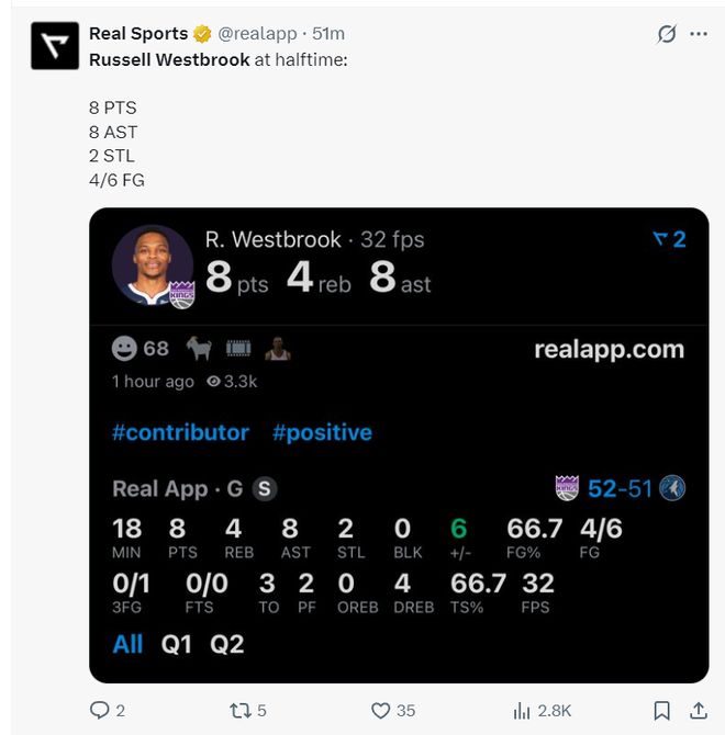 國王記者:拉塞爾-威斯布魯克可以跟任何人擋拆,擋拆配合時(shí)他都非常出色。