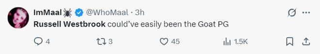 美記:威少原本有機(jī)會(huì)成為歷史最佳控球后衛(wèi)這一稱號(hào),GOAT PG。