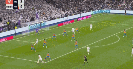 第82分鐘,羅德里戈內切兜射被封堵,卡雷拉斯將球攔下,禁區(qū)左側小角度打出神仙球,直掛球門右上角,打進皇馬生涯處子球,比分改寫成4-0!